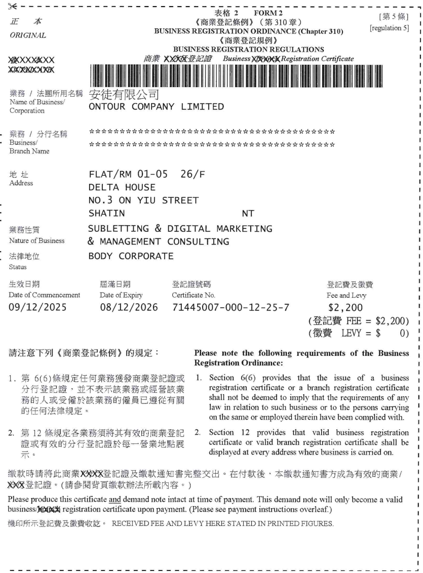 地産代理牌照(No.:C-097069) 及 商業登記證(BR.No.:71445007)
